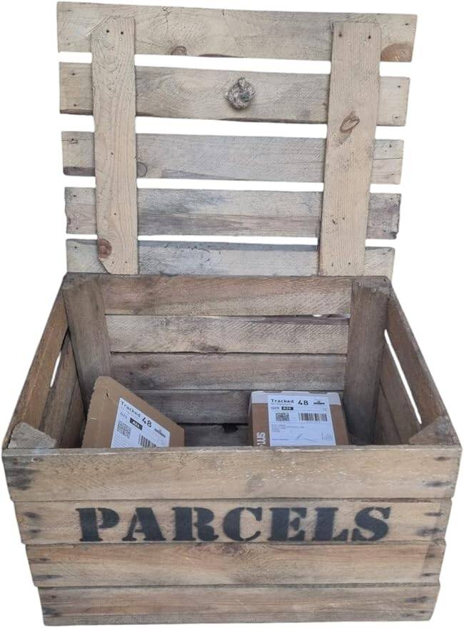 Rustic Vintage Parcel Drop Box - 50 cm (W) x 40 cm (D) x 31 cm (H) - Vintage Wooden Crate