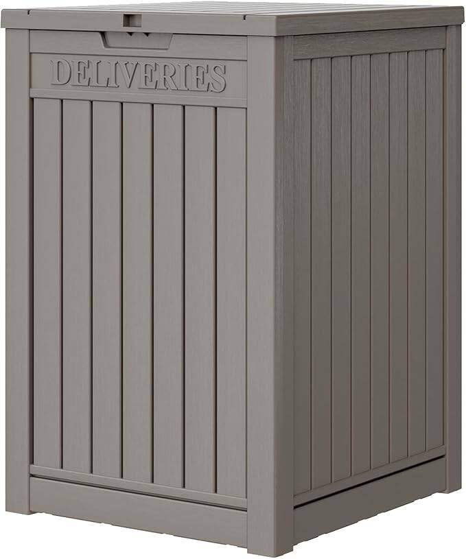 48 Gallon Package Delivery Box for Porch, Storage Box with Lockable Secure, Large Double Wall Resin Outdoor Package Delivery and Waterproof Deck Box