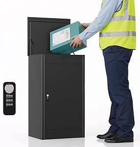 MSFE Extra Large Parcel Box Outdoor, Delivery Box with Combination Lock, 63x49.5x112cm, Durable, Anti-theft Weatherproof Secure Parcel Drop Box Outdoor For Multiple Packages (Black)