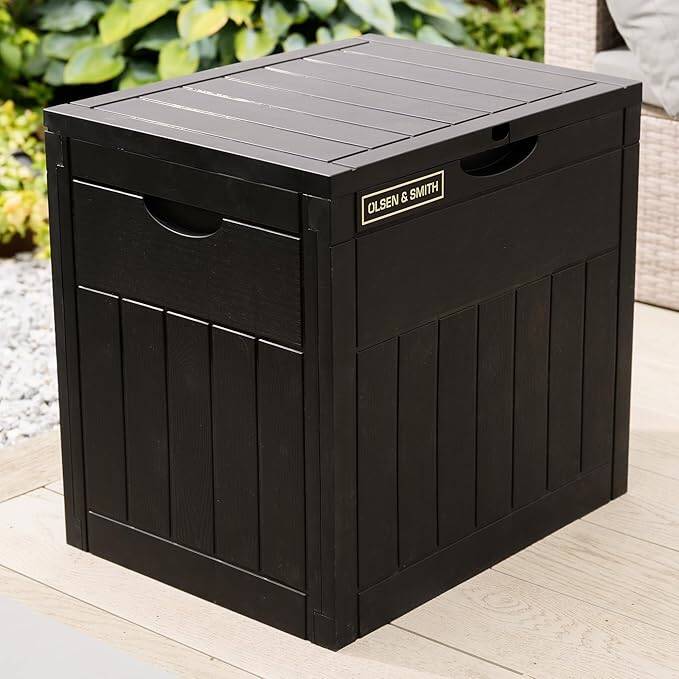 Olsen & Smith Lockable Outdoor Garden Plastic Storage Box Container Chest Lawn Balcony Furniture, Weather Resistant, Wood Panel Effect (126L)